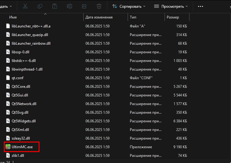 Открыть папку и запустить лаунчер через UltimMC.exe