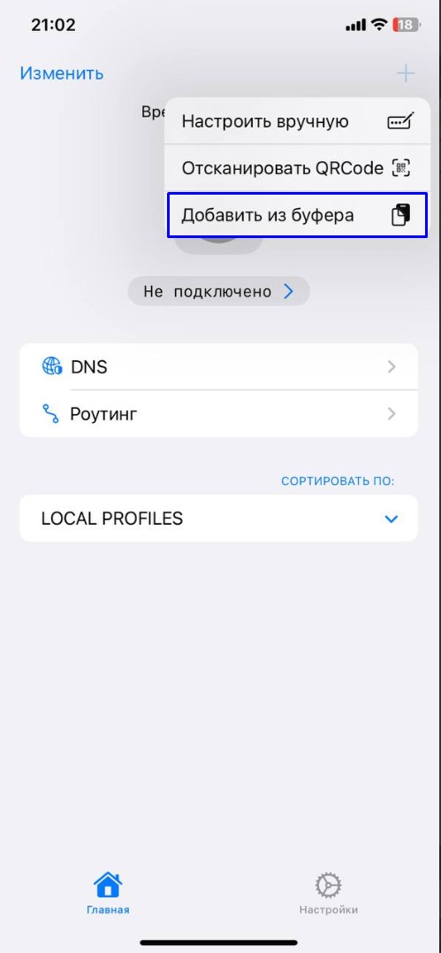 Выбрать пункт «Добавить из буфера обмена»